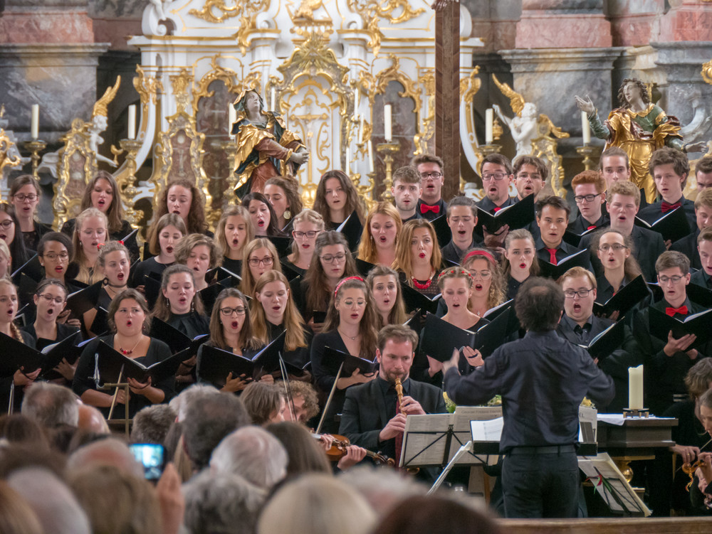 Es war großartig, miterleben zu können, zu welchen Leistungen unsere jungen Sängerinnen und Sänger fähig sind, mit wieviel Engagement, Einsatz, Ehrgeiz und Freude sie singen. Solch große Werke erfordern immenses Können und Ausdauer. Lange Melismen, kompakte Chorsätze, Stimmumfang bis in die Grenzlagen, ausgefeilte Atemtechnik, Gesang im Forte und Pianissimo, feinste Intonation wird von ihnen verlangt und Stefan Wolitz fordert dazu musikalischen Gestaltungswillen und überwältigenden, feinsten Chorklang. La Banda war ein erstklassig besetztes Barockorchester und der denkbar beste Partner für diesen tollen Chor, mit glänzenden Fanfarentrompeten, interessantem Holz und glänzend agierenden Streichern. Zuzuhören war ein Hochgenuss! Mit langem Applaus und mit stehenden Ovationen wurden die jungen Sängerinnen und Sänger, La Banda, die Stimmbildner und Stefan Wolitz, der souveräne Dirigent und Chorleiter, gefeiert. Der Chorverband Bayerisch-Schwaben darf stolz auf dieses Ensemble sein.