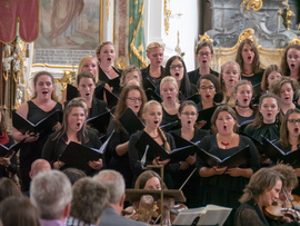 So war in der Reihe „Roggenburger Sommer“ ein Kirchenkonzert der Schwäbischen Chorakademie in der wunderbaren Roggenburger Klosterkirche angesagt, der passendste und prachtvollste Rahmen für Händels glanzvolle Musik, dem großen Chor der Schwäbischen Chorakademie und dem Orchester „La Banda“, das, auf historischen Instrumenten musizierend, den Klang des Barocks in das Gotteshaus zauberte.