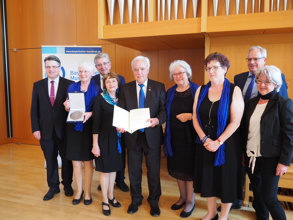 In seiner Laudatio nahm der Justizminister Bezug auf das diesjährige Doppeljubiläum „200 Jahre Verfassung Bayern“ und „100 Jahre Freistaat Bayern“. Prof. Dr. Bausback: „Bayern ist heute ein Verfassungs-, ein Freistaat und auch ein Kulturstaat.“ Mit der 1818 ganz selbstverständlich formulierten Garantieerklärung „individueller Freiheits- und Gleichheitsrechte“ habe Bayern eine Vorreiterrolle eingenommen. Diese Grundzüge der Verfassung und die Idee des Freistaates hätten Jahrhunderte mit Kriegen und Wirren, Gleichschaltung und nationalsozialistischer Schreckensherrschaft überstanden. Das gelte auch für Ensembles, die mit der Zelter- und Pro Musica-Plakette ausgezeichnet würden. „Wirtschaftskrisen und Weltkriege, eine menschenverachtende Diktatur und die Anstrengungen des Wiederaufbaus: Die Tradition, die Faszination, die Schönheit der Musik und der besonderen Gemeinschaft, die sich bildet, wenn man zusammen Musik macht, hat all das überlebt, weil Menschen mit wahrem Engagement und Herzblut dabei waren“, betonte der Minister und lenkte den Blick auf die zu Ehrenden: „Unsere Gesellschaft braucht Menschen wie Sie, die sich ehrenamtlich und dauerhaft engagieren und dabei noch gemeinschaftlich etwas so Schönes hervorbringen!“