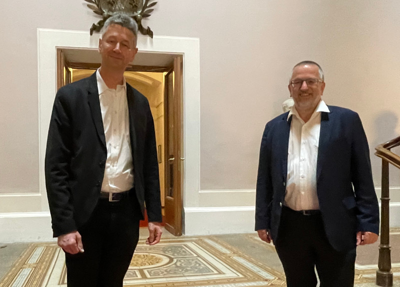 Der Präsident des Bayerischen Musikrates, Dr. Helmut Kaltenhauser, traf sich am 30.03.2022 mit dem für die Schulen zuständigen Staatsminister Prof. Dr. Michael Piazolo. Kaltenhauser drängte darauf, dass der praktische Musikunterricht in allen Schularten wieder seinen ursprünglichen Stellenwert und die früheren Unterrichtszeiten erhalten müsse. Auch müssten insbesondere die Schulensembles und der Wahlfachunterricht schnellstmöglich und umfänglich reaktiviert werden. Ergänzend dazu diskutierte man, wie die Vereine, Chöre und Orchester der Laienmusik durch Zusatzangebote und durch eine verstärkte Zusammenarbeit mit den Schulen den Musikunterricht in Schulen stärken könnten. Staatsminister Piazolo benannte Anregungen von Seite der Vereine als möglich und erwünscht. Angebote der Vereine wie z. B. Schnuppertage könnten gute Beispiele für eine Zusammenarbeit werden. BMR-Präsident Kaltenhauser forderte außerdem weitere musikalische Fortbildungen für Lehrer und eine deutliche Unterstützung für alle Maßnahmen der Reaktivierung der Musik an Schulen durch den Minister und sein Haus. Musikalische Aktivitäten müssten wieder wertgeschätzt werden.