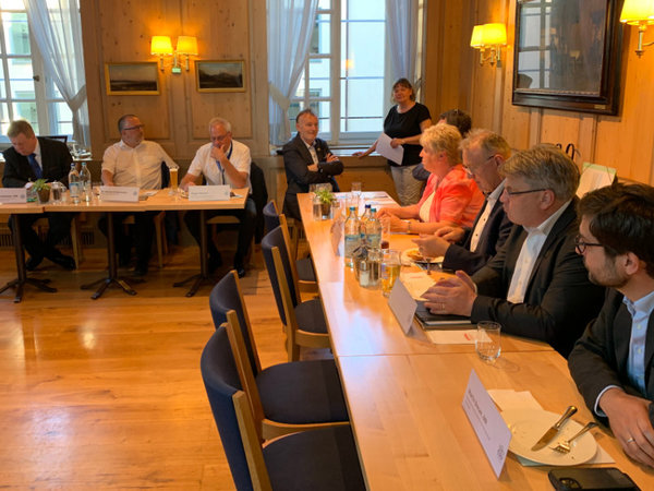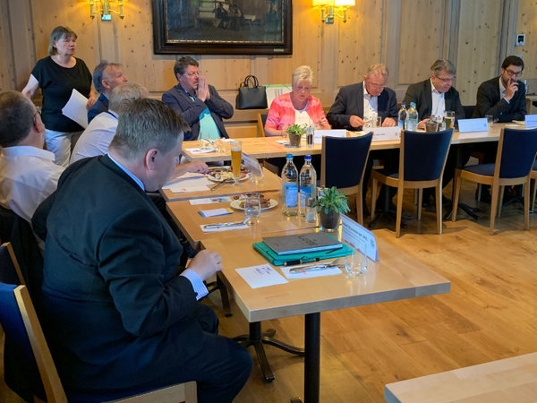 Den Abschluss der Parlamentarischen Frühstücke mit den verschiedenen Landtagsfraktionen bildete das Gespräch mit der CSU-Fraktion, diesmal in der Form einer Parlamentarischen Brotzeit. BMR-Präsident Dr. Kaltenhauser begrüßte besonders den Vorsitzenden des Wissenschaftsausschusses Robert Brannekämper und dankte für die „Anhörung zur Lage der Laienmusik nach Corona“. Nachdem die Vertreter des BMR ihre Arbeit vorgestellt hatten, entwickelte sich eine intensive Diskussion über die Herausforderungen des schulischen Ganztag, der in den nächsten Jahren kommen wird.