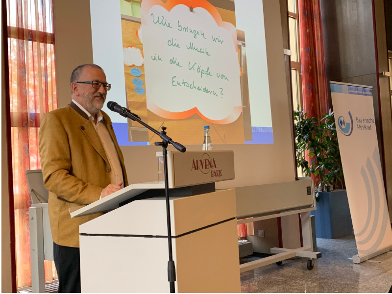 Nach dem vereinsrechtlichen Teil diskutierten die Mitglieder des Musikrats über die Frage „Wie bringt man die Musik in die Köpfe der Entscheider?“. Hier wurden die Mitwirkung von Musiker:innen in politischen Entscheidungsgremien genannt, die Verdeutlichung der Wichtigkeit von Musik für alle Bereiche der Gesellschaft (soziales Miteinander, musikalische Umrahmungen von Festen und Veranstaltungen etc.) aber auch Aktionen empfohlen wie ein Spontan-Konzert vor einer Kulturausschuss-Sitzung. Als Arbeitsauftrag für 2024 beschloss die Mitgliederversammlung die Durchführung einer Arbeitstagung zum Thema „Musik im schulischen Ganztag“. Diese Tagung soll voraussichtlich im kommenden April in Augsburg stattfinden.