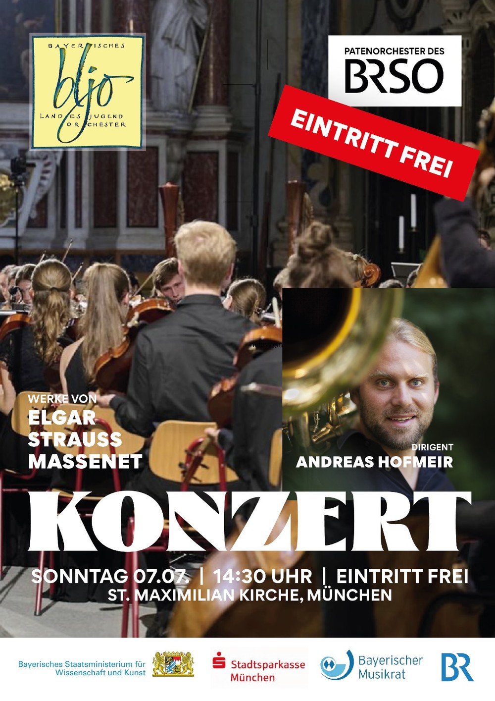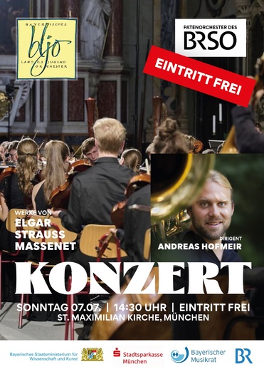 Nach der kurzfristigen Absage des Munich Music Days hat sich das Bayerische Landesjugendorchester entschlossen, das geplante Programm anstatt in der EM FAN ZONE in der Sankt Maximilianskirche, Deutingerstr. 4, München zu präsentieren. SO 07.07.2024, 14:30 Uhr - Eintritt frei