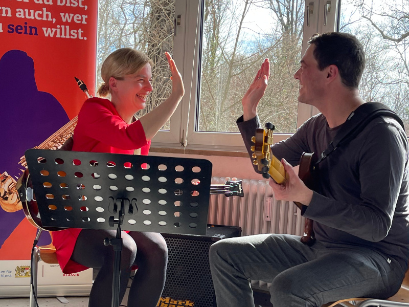 Das ist mal eine begeisterte Schülerin! Katharina Schulze bekam im Rahmen der Aktion #MachMusik des Bayerischen Musikrats eine Schnupperstunde am E-Bass. Lehrer war Heiko Jung von der Jazzschool München. Das Ergebnis kann sich sehen lassen! Was in einer Stunde doch so alles möglich ist... :-)