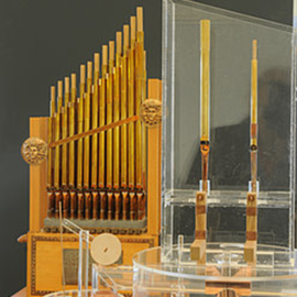 In ihren Schriften „Zurück zur wahren Orgel“ und „Die Orgel der Zukunft“ setzten Albert Schweitzer und der Straßburger Organist Èmile Rupp eine Entwicklung im Orgelbau in Gang, die unter dem Begriff „Orgelbewegung“ im 20. Jahrhundert unter anderem zur Rückkehr zur mechanischen Spieltraktur sowie zur Orientierung an den Bau- und Klangprinzipien des klassischen Orgelbaus führte. Von diesen Auffassungen geprägt baute der Architekt, Orgelsachverständiger und Denkmalpfleger Walter Supper um 1936 eine Hausorgel, die als Leihgabe im Orgelmuseum Schloss Haunstein zu bewundern ist. Foto: www.orgelbaumuseum.de