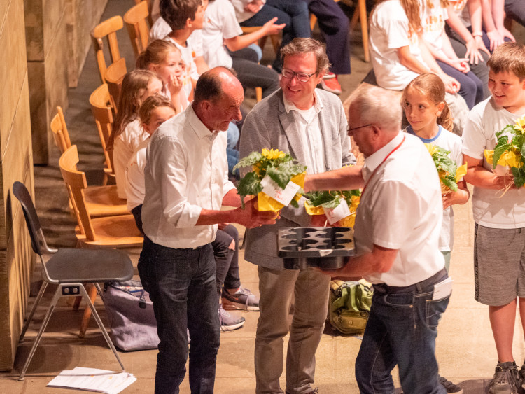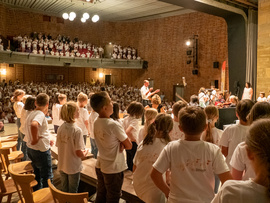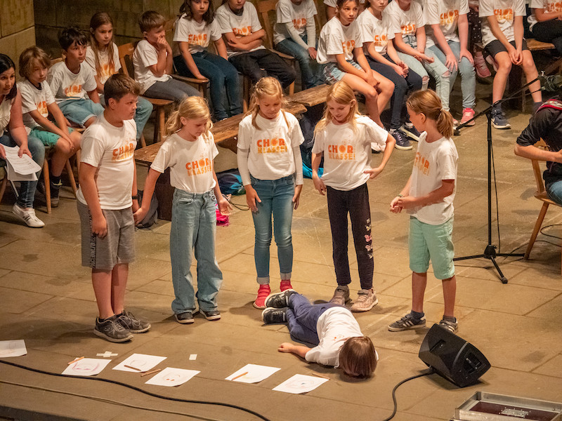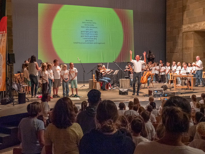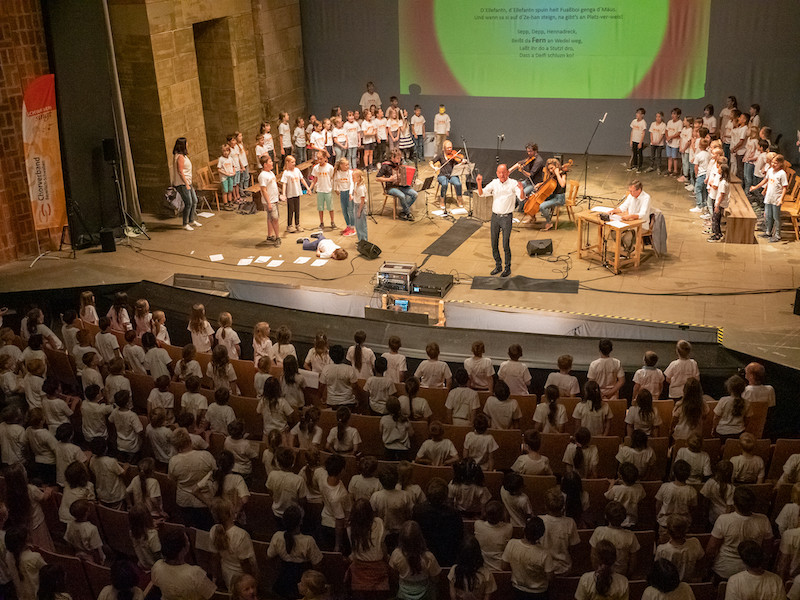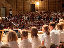 Am Ende gab es tosenden Applaus und das Chorklassentreffen-Lied als Zugabe. „Wir sind bisher bei jedem Chorklassentreffen gewesen und es ist immer toll“, lobte eine Lehrerin die Aufführung. Bepackt mit den Brotzeiten, die es für alle Kinder gab, führte sie die lustig durcheinander schwatzenden Chorklassenkinder zum Bus. „Wir kommen ganz sicher im nächsten Jahr wieder!“