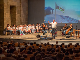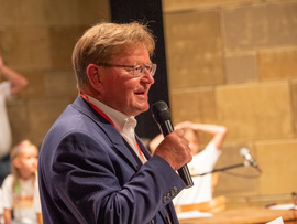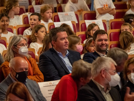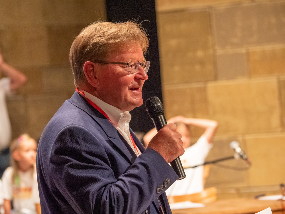 Am Donnerstag und am Freitag rollten Busse aus allen Regionen Bayerisch-Schwabens an und brachten Schulkinder aus Grund- und Förderschulen zum Chorklassentag in das Passionstheater in Waal. „Endlich wieder gemeinsam singen“, beschrieb Dr. Paul Wengert, Präsident des Chorverbands Bayerisch-Schwaben, seine Freude gegenüber den über 1000 Chorklassenkindern am Donnerstag und Freitag. Zwei Mal musste der Chorklassentag wegen der Pandemie verschoben werden.