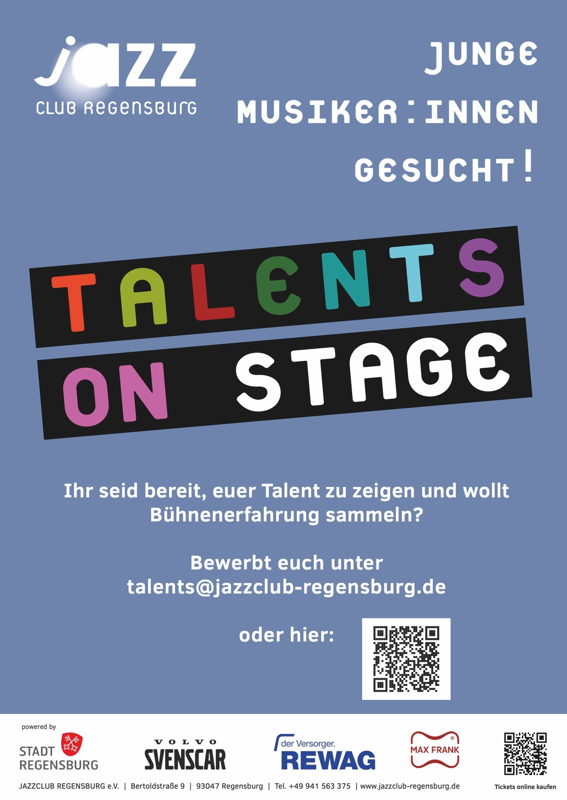 Der Jazzclub Regensburg e.V. freut sich, seine Reihe „Talents on Stage“ anzukündigen, die sich an die talentierte junge Musikszene in Regensburg und Umgebung richtet. Mit dieser Initiative möchte der Jazzclub aufstrebenden Künstler:innen eine Plattform bieten, auf der sie ihre musikalischen Fähigkeiten vor Publikum präsentieren und wertvolle Auftrittserfahrungen sammeln können.