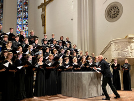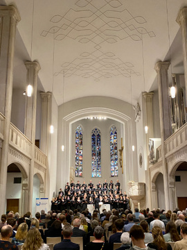 Das Publikum in der fast voll besetzten Kirche St. Markus ließ sich vom Bayerischen Landesjugendchor auf eine spannende, vier Epochen umfassendes Reise durch die Chormusik mitnehmen. Zu den großen Klassikern wie J.S. Bachs Motette "Der Geist hilft unsrer Schwachheit auf" oder Brahms´ Fest- und Gedenksprüche waren Werke aus der Moderne von Chilcott, Esenvalds, Sandström und Makaroff zu hören.