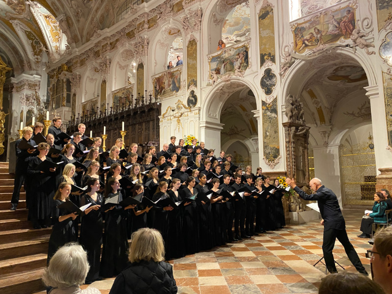 Eine besondere Botschaft unseres Konzertprogramms entnehmen wir dem zweiten Kapitel der Apostelgeschichte: Hier wird zuerst von einem Sturm, der das ganze Haus erfüllt, zum anderen jedoch über Feuerzungen berichtet, die über den Köpfen der Freunde Jesu erscheinen, die nach seiner Himmelfahrt zu verzagen drohten. Und plötzlich ist ihre Angst wie weggeblasen, sie macht einer neu gewonnenen Zuversicht Platz. Dies soll auch für uns ein Hoffnungsschimmer für die Anforderungen und den Umgang unserer Zeit sein, in der kaum mehr etwas in der gewohnten und scheinbar sicheren Ordnung verortet zu sein scheint.