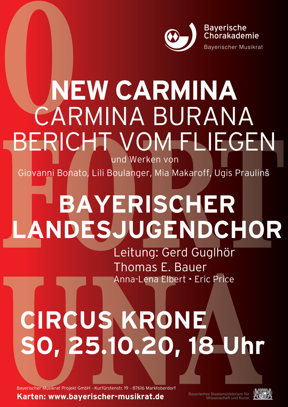 Anlässlich des 125. Geburtstags von Carl Orff hat Prof. Gerd Guglhör ein spannendes Programm zusammengestellt: Zu hören sind die berühmte CARMINA BURANA und Orffs BERICHT VOM FLIEGEN, demgegenüber stellt er Werke zeitgenössicher Komponisten unter dem Titel NEW CARMINA von Lili Boulanger, Giovanni Bonato, Ugis Praulinš, Mia Makaroff.