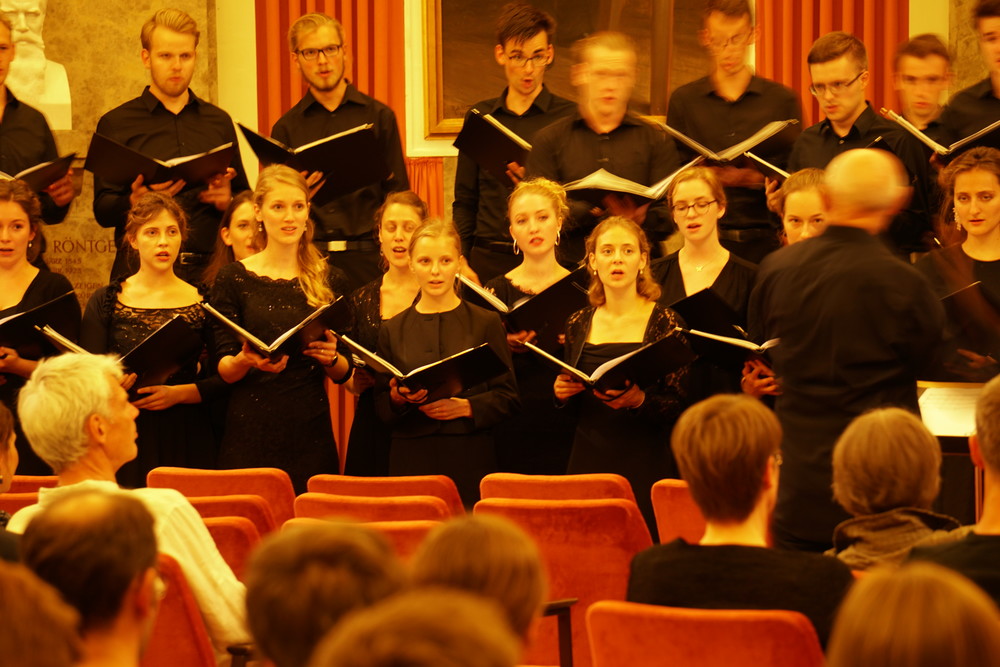 Gerd Guglhör, der Leiter des Bayerischen Landesjugendchores hat vielschichtige Werke der unterschiedlichsten Komponisten zusammengestellt, die sich alle um das eine Thema drehen – das Universum. Die ausgewählten Werke reichen von klangprächtigen Motetten aus dem frühen Barock über Robert Schumanns „An die Sterne“, Max Regers „Das Sternlein“ über James MacMillans Vertonung des Gedichts „Sun Dogs“ bis hin zu „Iuppiter“ des Kölner Komponisten Michael Ostrzyga. Publikumsliebling bei allen drei Konzerten war „It’s only a paper moon“ ein Arrangement von Thomas Ganzenmüller, einem Sänger des Bayerischen Landesjugendchores, ein jugendlich frischer, fröhlicher Swing.