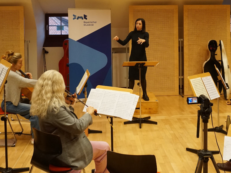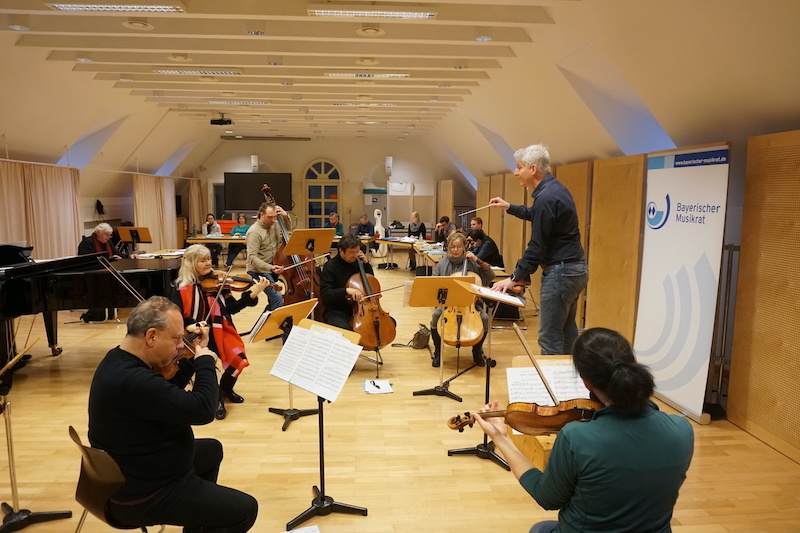Im Mittelpunkt der 2. Phase des Dirigierkurses Laienmusik in der Bayerischen Musikakademie Marktoberdorf stand die Arbeit mit einem Streichquintett. Unter der Anleitung von Prof. Karl-Heinz Bloemeke erlernten die Teilnehmenden wichtige Techniken.