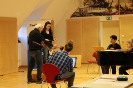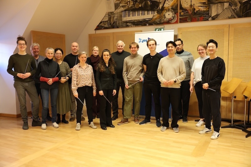 Unterstützt durch Korrepetitor Wolfgang Weber gab Prof. Karl-Heinz Bloemeke den Teilnehmerinnen und Teilnehmern die Möglichkeit, Herausforderungen des Dirigierens mit unterschiedlichen Ensemblekonstellationen zu üben, sein unmittelbares Feedback sofort umzusetzen und sich dadurch individuell weiterzuentwickeln. Persönliche Videoanalysen kamen unterstützend hinzu.