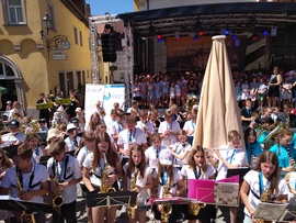 Über 500 Kinder und Jugendliche aus Schulen in Unterfranken eröffneten die Europatage der Musik 2019 mit dem zweiten Chor- und Bläserklassentag. Organisator Andreas Horber vom Bayerischen Musikrat und Birgit Huber, Leiterin des Referats für kulturelle Bildung im Kultusministerium in München, erzählen worum es geht. Und vier junge Musiker vom Aalbachtaler Musikverein wissen genau, warum sie hier mitmachen.