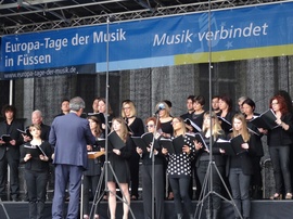 Die Europa-Tage der Musik feierten 2015 das Festwochenende in Füssen und hinterließen hier "restlose Begeisterung", wie es eine Besucherin am Sonntagabend im Festspielhaus formulierte. 2000 Akteure musizierten an drei Tagen in Füssen und ließen das Motto der Europa-Tage "Musik verbindet" aufleben. "Musik verbündet", ging der Präsident des Bayerischen Musikrats, Dr. Thomas Goppel sogar noch weiter. Zu sehen und zu hören war dies in den zahlreichen Konzerten: am Freitag beim Chorklassentreffen im Festspielhaus mit rund 800 Kindern aus Schwaben und Oberbayern, bei der Nacht der offenen Kirchen, beim Tag der Laienmusik am Samstag mit 600 Musikern aus Bayern, der Bukowina und Italien, Schweiz und Österreich, beim Galakonzert, dem Festgottesdienst, der BR Blasmusik Livesendung aus dem Klosterhof und dem fulminanten Abschluss mit der Carmina Burana für großen Chor und sinfonisches Blasorchester im ausverkauften Festspielhaus.