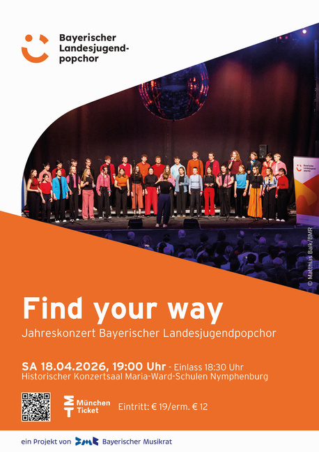 18. April 2026 - 19:00 Uhr Historischer Konzertsaal Maria-Ward-Schulen Nymphenburg Jahreskonzert Bayerischer Landesjugendpopchor Karten €19/erm. €12 Einlass 18:30 Uhr TICKETS Datum: 18. April 2026 Uhrzeit: 19:00 Uhr Veranstalter: Bayerischer Landesjugendpopchor Ort: Historischer Konzertsaal Maria-Ward-Schulen Nymphenburg zurück