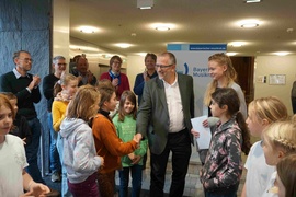 Gespannt warteten die jungen Sängerinnen und Sänger mit ihren Chorleiter*innen auf die Urkunden, die BMR-Präsident Dr. Helmut Kaltenhauser im Foyer der BR Studios feierlich übergab. Viermal konnte die Jury mit hervorragendem Erfolg teilgenommen, viermal mit sehr gutem Erfolg und zweimal sehr erfolgreich teilgenommen vergeben. Und das Wichtigste: man spürte den Kindern und Jugendliche die Freude am Singen an - ein perfekter Start für das Bayerische Chorwochende in München.