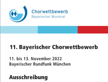 Mitstreiter gesucht! Alle vier Jahre (2022 mit einjähriger Verzögerung) treffen sich Bayerns Chöre um gemeinsam ein großes Chorfest zu feiern! Die Anmeldefrist für den Bayerischen Chorwettbewerb vom 11. bis 13. November in München endet am 30. Mai 2022. Infos und Anmeldung hier.