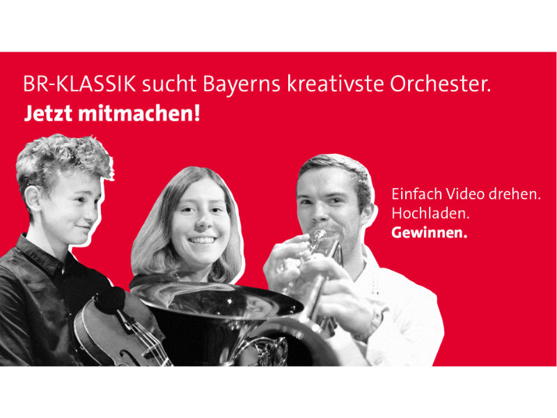 Im Rahmen des Bayerischen Orchesterwettbewerbs 2024 schreibt BR-KLASSIK eine Digitalkategorie aus. Gesucht sind Bayerns kreativste Orchester, die sich in einem bis zu dreiminütigem Video kurz vorstellen und ihre Begeisterung für die Musik teilen. Die zehn besten Videos kommen in eine Onlineabstimmung. Zu gewinnen gibt es einen Soloauftritt mit einer Musikerin oder einem Musiker aus dem Münchner Rundfunkorchester sowie ein Videoportrait mit: Sir Simon Rattle!