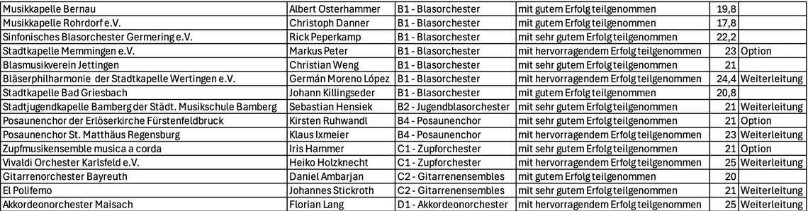 15 Orchester präsentierten am ersten Wettbewerbstag in den Kategorien Blasorchester, Jugendblasorchester, Posaunenchöre, Gitarrenensembles, Zupf- und Akkordeonorchester ihr Können und begeisterten sowohl Publikum als. auch Jury. 5 x Hervorragend, 6 x sehr gut und 4 x gut - sechs Weiterleitungen zum Deutschen Orchesterwettbewerb 2025 - eine tolle Bilanz!