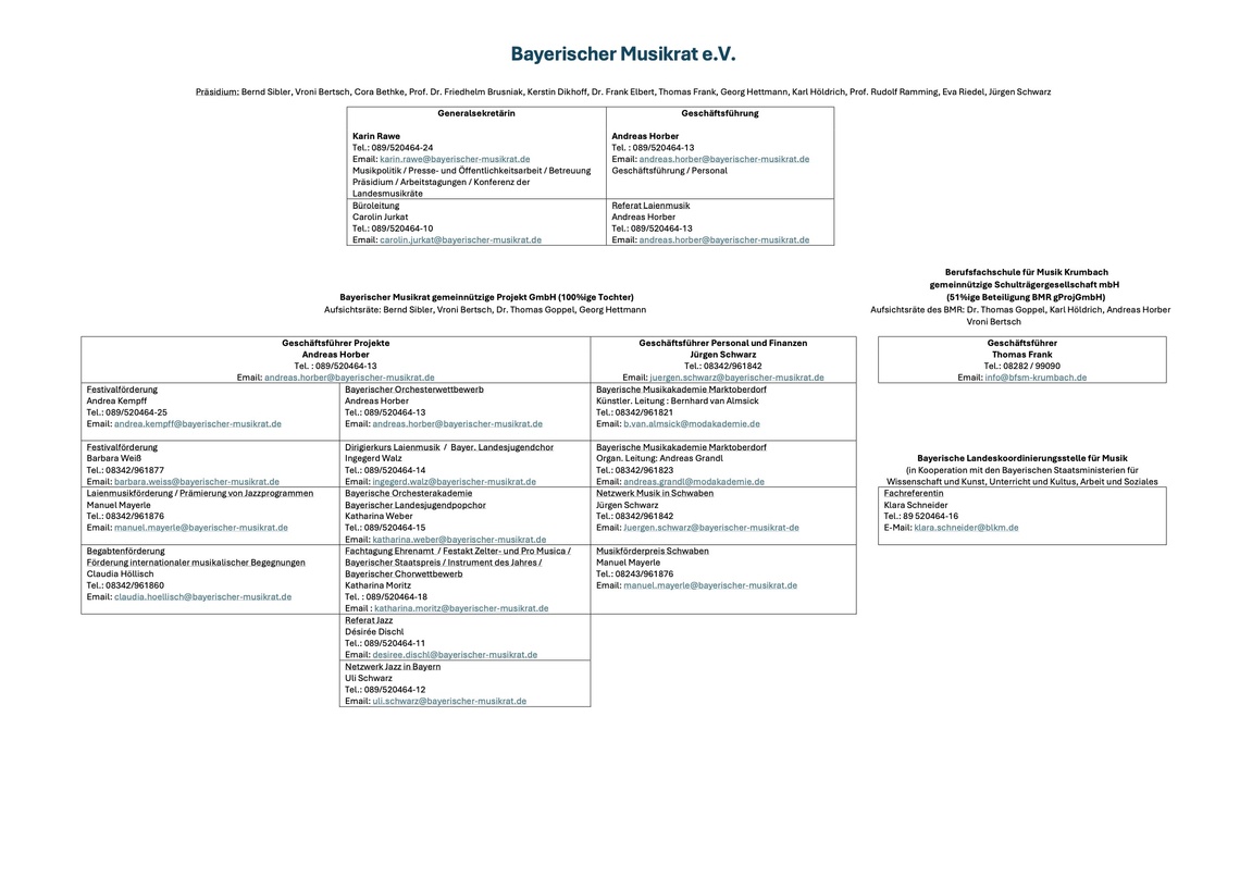 Beschreibungen der organisatorischen Struktur des Bayerischen Musikrat e.V. und seiner 100% Tochtergesellschaft, der Bayerischer Musikrat gemeinnützige Projekt GmbH: